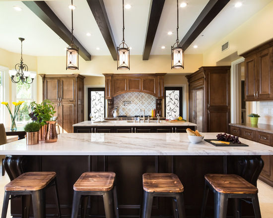 現(xiàn)代光滑的大理石材質(zhì)桌面搭配古樸的木紋用具,古今搭配的格調(diào)給了廚房典雅的混搭之意,造型精致的簡約式帶燈即使坐在臺柜上用餐也能感受到滿滿的浪漫情懷。