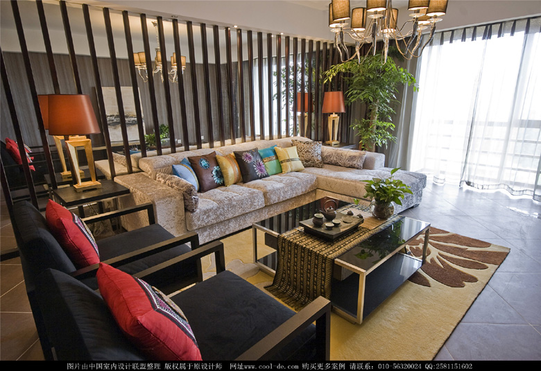 這套住宅被定義為新中式風格,每一個空間里都能看到中式和歐式的元素,并且相得益彰。業主自己是中式家居的熱愛者,但又希望家里別像傳統中式家居過于沉穩幽暗,希望整個空間顯得明亮。因此,設計師既保留傳統中式風格的特點,同時也根據房屋自身環境和業主的需求融入新的元素,低調又不失奢華。設計中多以暖色系的飾物、燈光與木制家具進行調和搭配,讓整體風格既統一又獨具韻味。